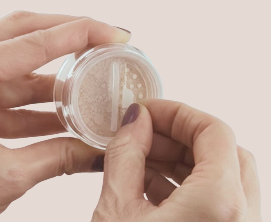 La poudre est maintenant prête à l'emploi. Effectuez de légers mouvements circulaires sur le visage pour mélanger la poudre aux huiles de la peau. Moins il y en a, plus il y en a, plus la couvrance est importante.