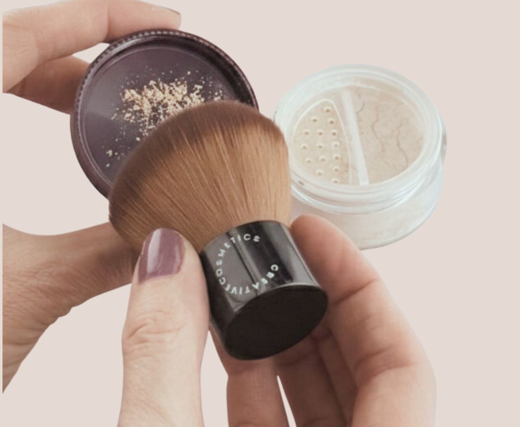L'APPLICATION D'UN FOND DE TEINT MINÉRAL.